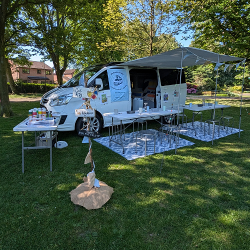 My mobile creative studio you can book for festivals, events or community projects, bringing art and creative wellbeing to your site.