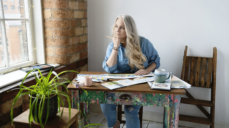 I’m Kelly, an artist, creative wellbeing guide and creative strategist. My work brings together art, imagination and gentle creative wellbeing to help people and places feel more connected and creatively alive.