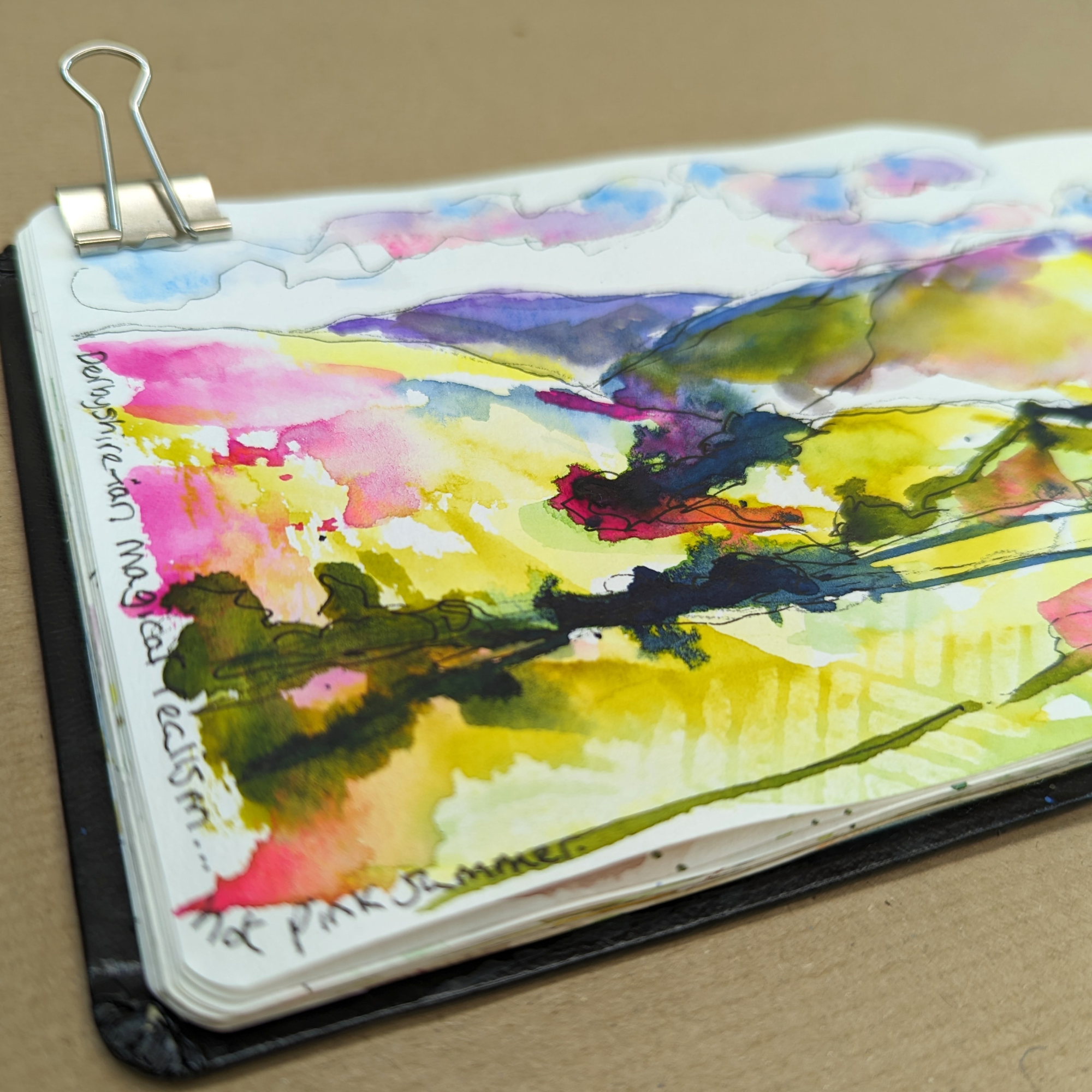 You will learn how to draw, paint and ink a watercolour sketchbook page. Including everything from understanding the landscape and observation, through to composition, drawing, painting with watercolours and using ink pens.