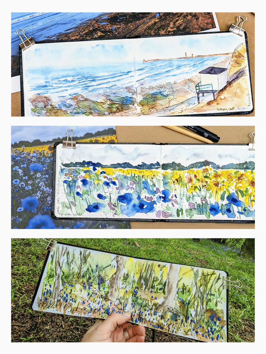 A sketchbook full of beautiful watercolour landscapes you painted! because you knew the techniques, felt confident and had loads of fun! This looks like: